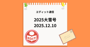 皆さまへ いつもお世話になっております。エディットのメルマガ「エディット通信」(2025年/夏至号)をお送りします。 今回は、「EDIX大阪2025/見学レポート」をお送りします。ご一読いただけますと嬉しいです。 「第8 […]